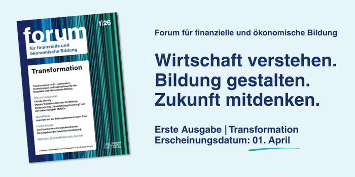 Die Auftaktausgabe steht unter dem Schwerpunkt „Transformation“ und widmet sich den Auswirkungen zentraler gesellschaftlicher und wirtschaftlicher Veränderungsprozesse auf die finanzielle und ökonomische Bildung. Im Fokus stehen insbesondere Klimawandel, Digitalisierung und demografischer Wandel als wesentliche Treiber struktureller Transformationen, die Bildungsprozesse, Curricula und bildungspolitische Rahmenbedingungen nachhaltig prägen.