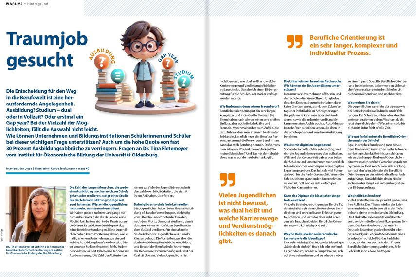 Dr. Tina Fletemeyer (Leiterin Berufliche Orientierung am IÖB), hat im Stiftungsreport der Stiftung NiedersachsenMetall über die Herausforderungen junger Menschen beim Übergang ins Berufsleben gesprochen. Im Interview erläutert sie, wie Unternehmen und Bildungseinrichtungen Jugendliche bei der Berufswahl unterstützen können und welche Hürden bestehen.