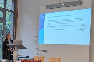 Zu den Vortragenden zählte u. a. auch Anna-Lena Müller (Wissenschaftliche Mitarbeiterin, IfÖB), die aus ihrem Dissertationsprojekt im Rahmen der Early-Mid-Career-Researcher (EMCR) zum Thema „Sprachliche Anforderungen in der beruflichen Orientierung“ referierte. Neben der Vorstellung des Forschungsvorhabens stand dabei vor allem die Fragestellung im Fokus, mit welchen sprachlichen Anforderungen junge Menschen auf dem Weg von der Schule in den Beruf konfrontiert werden und wie diese gefördert werden können.