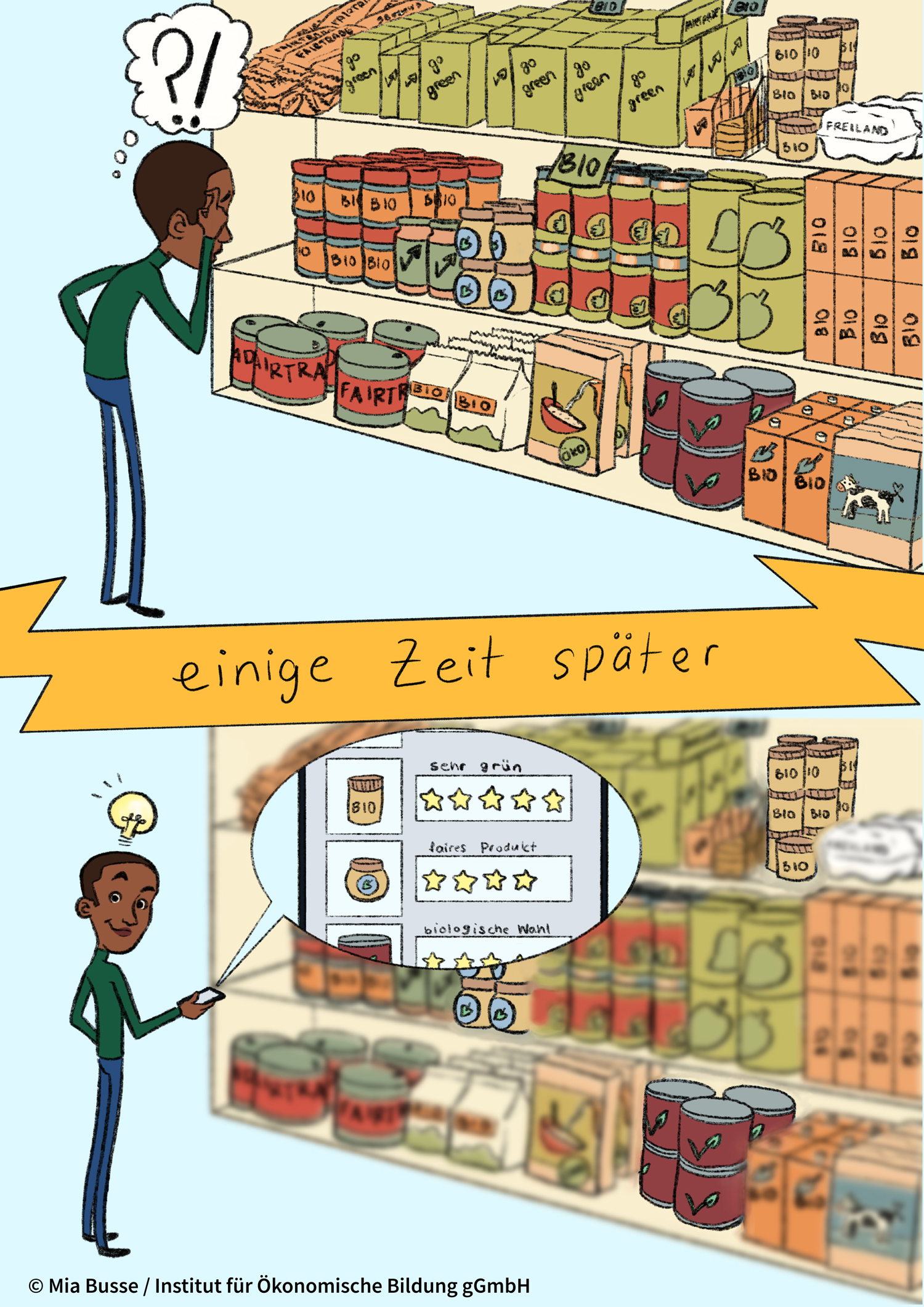 Die im Rahmen des Projekts Zukunftsdiskurse: „Verbraucher*innen zwischen Anspruch und Überforderung“ entstandenen Materialien stehen Lehrkräften zum kostenfreien Download zur Verfügung. Sie können im Schulalltag genutzt werden, unterliegen jedoch dem Copyright des Instituts für Ökonomische Bildung gGmbH und sind nicht für die kommerzielle Nutzung gestattet. Darüber hinaus können Schulen die Exponate des Bildungsevents anfordern - melden Sie sich gerne diesbezüglich bei uns.